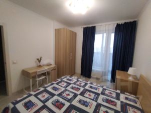 Балкон из спальни (панорамное остекление). Интернет, домашнее ТВ. Спальня - 12,5, гостиная -18 кв.м., кухня 10 кв.м., прихожая - 8,7 кв.м. Коммунальные платежи включены в плату за наем, счетчики оплачиваются отдельно - по фактическому потреблению.