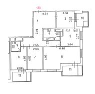 Общая площадь квартиры: 129 м2.
