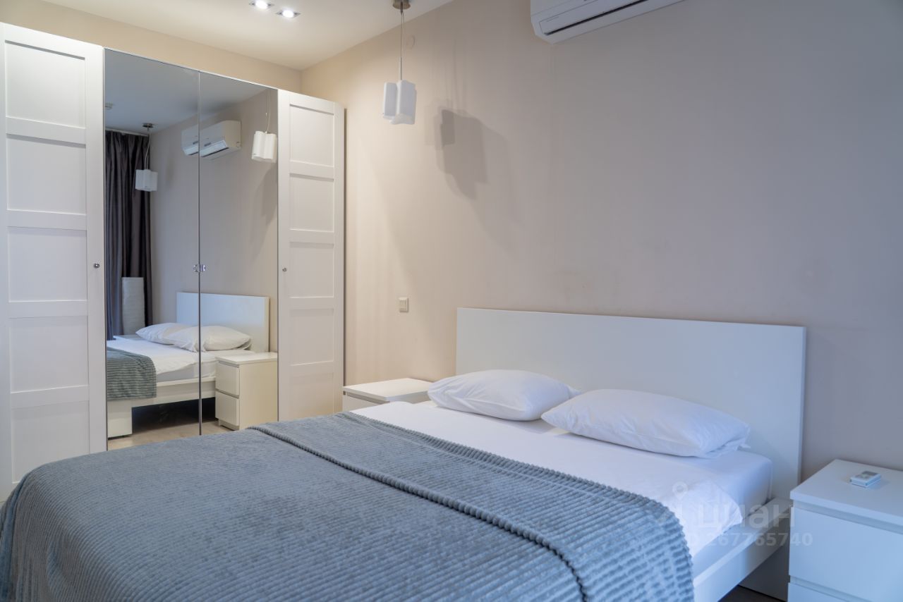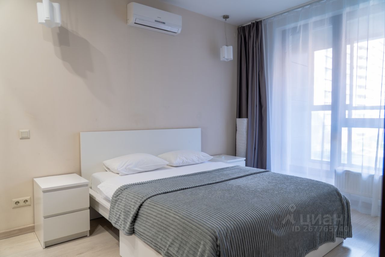 - Отдельная спальня с двуспальной кроватью с ортопедическим матрасом 160х200, белоснежное хлопковое белье , плотные шторы блэкаут. Из спальни выход на просторную лоджию.
