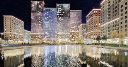 Сам Жк подсвечивается ночью, что придаёт комплексу сказочный вид. Во дворе пруд с лежаками, площадка для тенниса, футбола, площадки для занятия спортом и отдыха. Охраняемая закрытая территория, подземный паркинг(есть возможность снять машино-место). В доме с внешней стороны пекарня, OZON, аптека и продуктовые магазины Мираторг, ВкусВил, Пятерочка.