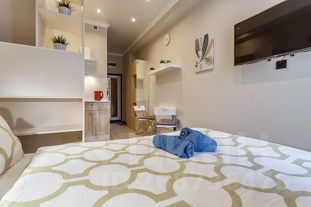 ОПИСАНИЕ: апартаменты с новым дизайнерским евро-ремонтом со всей необходимой мебелью. Размещение до 2 человек. Спальные места: двуспальная кровать. Встроенная кухня, с/у в кафеле, импортная сантехника, стеклопакеты.