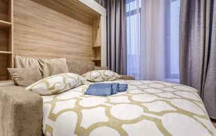 ОПИСАНИЕ: апартаменты с новым дизайнерским евро-ремонтом со всей необходимой мебелью. Размещение до 3-х человек. Спальные места: двуспальная кровать и раскладное кресло. Встроенная кухня, с/у в кафеле, импортная сантехника, стеклопакеты.