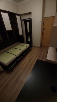 кровать убирается в шкаф. Длина спального места 190см, поэтому рассчитываете, исходя из своего роста, подходит ли вам.