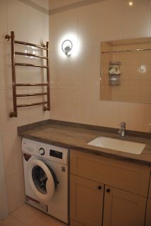 Две изолированные спальни, гостиная изолирована от кухни, два изолированных санузла. Кухонный гарнитур Эко-мебель. Встроенная бытовая техника. Xолодильник Liеbherr, электроплита и духовка Bosch, НОВАЯ стиральная машина Electrolux, система очистки воды на кухне, два телевизора, интернет + цифровое ТВ, роутер. В гостиной и спальнях просторные шкафы.