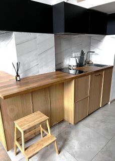 Рассматриваем всех, у кого есть голова на плечах (нам абсолютно без разницы какого вы гендера и чем занимаетесь, собака ли у вас, кошка или кто экзотичнее). В квартире есть все необходимое для комфортной жизни: стиральная машина с сушкой, духовка/гриль/микроволновка, индукционная плита, посудомоечная машина, холодильник, винный холодильник (и даже рейл для бокалов), утюг (дадим контакт, кто им мастерски управляется и поможет поддержать дом в чистоте), TV, кондиционер, мини-гардеробная (там можно и сумки красиво расставить, и туфли, и сникеры), и даже книги. А на огромном мягком диване с наполнением из пуха и пера можно провести и неделю, если захочется.