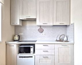 В квартире есть холодильник, стиральная машина, гладильная доска, утюг, сушилка для белья и фен. Кухня оборудована необходимой техникой и посудой и техникой.