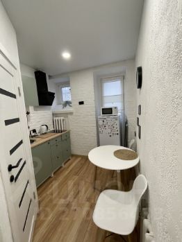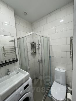 В студии есть все необходимое для проживания: кухонный гарнитур, холодильник, индукционная варочная поверхность, двуспальная кровать, чайник, микроволновая печь, телевизор. В ванной душевая кабина, есть стиральная машина. Высокие потолки создают ощущение большого пространства и объема.