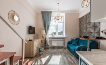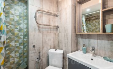 В квартире сделан косметический ремонт, поэтому она выглядит аккуратно и современно. Обстановка включает в себя необходимую мебель как в комнате, так и на кухне. Из техники есть холодильник, телевизор, посудомоечная машина и стиральная машина. В ванной комнате установлена душевая кабина, поэтому можно быстро освежиться после рабочего дня.