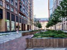 Двор без машин. На территории магазины, кафе, Царский павильон, зона у фонтана.