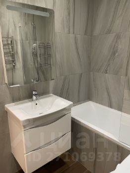 Совмещённый санузел с комфортной ванной, раковиной и зеркалом с подсветкой