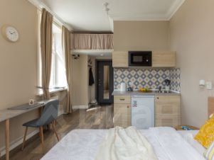 Вашему вниманию представляем светлую и уютную студию с двумя окнами в двух шагах от метро Окружная! Для большой семьи или компании в нашем комплексе есть возможность забронировать сразу несколько студий одновременно!