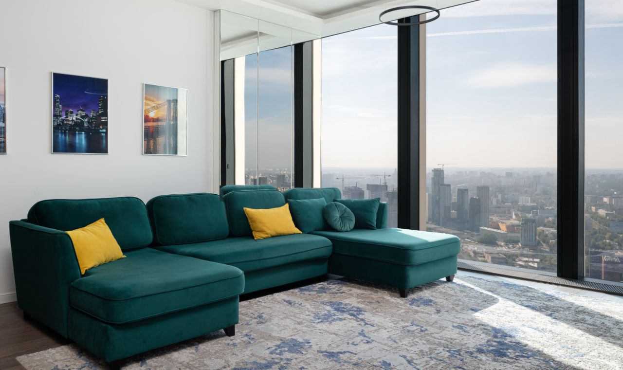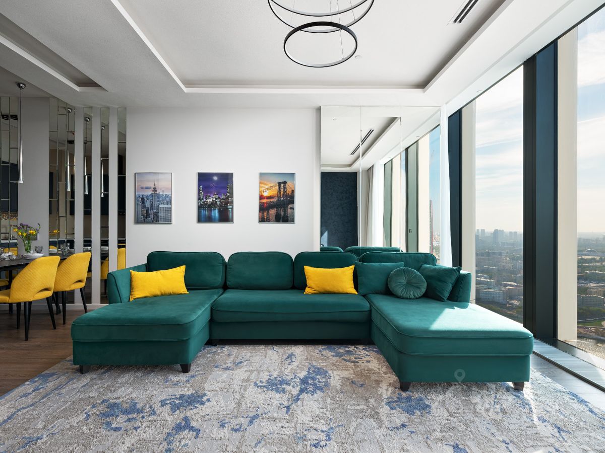широкая двуспальная кровать KING SIZE и двуспальный комфортный диван в кабинете;