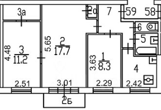 ОТ СОБСТВЕННИКА, Без комиссии! Трехкомнатная квартира на длительный срок, две комнаты раздельные по 11,2 и 8,3 м2, одна комната проходная 17,7 м2. Санузел - раздельный. Балкон не застеклен.