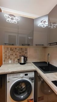 Квартира укомплектована: телевизор, плита газовая, холодильник, вытяжка, стиральная машина, кухонный гарнитур, 2 больших дивана, кровать, 2 шкафа, место под гардеробную.