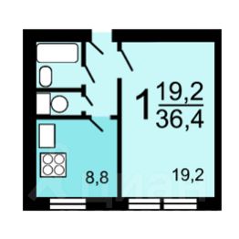 (большая комната и большая кухня, ванная комната и туалет раздельные, балкон).