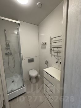 В ванной установлена душевая кабина с раздвижными дверцами, выдвижной ящик и полки.
