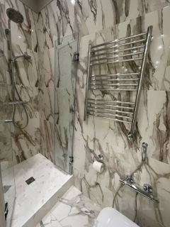 -отдельно расположен блок с основной спальней и гардеробной, основной санузел с душевой кабиной и ванной, гостевой туалет - сантехника от лучших европейских производителей (дополнительно установлен бойлер), стиральная машина;