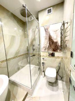 В апартаментах выполнен современный дизайнерский ремонт по новейшим технологиям с использованием экологически чистых дорогих отделочных материалов. После ремонта ни кто не жил. Уютная светлая спальня выполненная в теплых тонах, с большой гардеробной, гостиная с кухонной зоной и великолепным видом на Сити и гостиницу Украина, ванная комната включает и современную душевую кабину и ванну. Апартаменты полностью укомплектованы высококачественной бытовой техникой ( включая бойлер) и дорогой мебелью. В зоне ниже телевизора имеется БИО-КАМИН.