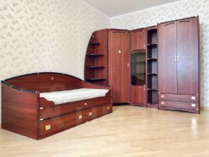 Детская с дополнительной шумоизоляцией на потолке, есть выход на вторую лоджию, установлен кондиционер.