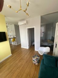 В центре района "Пресня" сдаётся однокомнатная квартира в доме 2015 года постройки, выполненному по индивидуальному проекту. В подъезде всего 7 этажей, 4 квартиры на каждом. Квартира очень светлая, оригинальной планировки, с дизайном в скандинавском стиле. Общая площадь 39 метров. Большая комната разделена перегородкой со стеклом и дверью на две части. Выделена спальная зона с широкой двуспальной кроватью и гостиная с рабочей зоной на широком дубовом подоконнике, уютным разборным диваном и smart телевизором. В тёплое время вместительная лоджия позволяет устраивать вечерние посиделки с видом на город. На кухне имеется вся необходимая техника: кондиционер, холодильник, микроволновая печь, посудомоечная машина. Установлен 5-ти ступенчатый фильтр очистки воды. В ванной комнате установлена современная сантехника. В прихожей установлен очень вместительный шкаф купе. Квартира идеально подходит для 1-2 человек, с возможностью разместить приехавших гостей на несколько ночей. На первом этаже находиться помещение общего пользования (колясочная) где можно разместить велосипед, санки или иные габаритные вещи. Рядом с домом развитая инфраструктура, поблизости магазины, рестораны, кафе, образовательные и лечебные учреждения. Дом с круглосуточной охраной и видео наблюдением, въезд во двор под шлагбаум, на территории "стихийная" надземная парковка, но в доме так же имеется и подземный паркинг. В соседнем доме расположен World Class с бассейном. Квартира сдаётся после косметического ремонта на длительный срок.