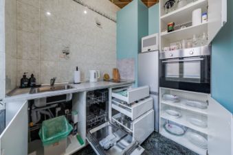 - вся необходимая мебель для проживания 6 гостей: 2 двуспальные кровати, диван в гостиной, много места для хранения вещей и обеденная зона