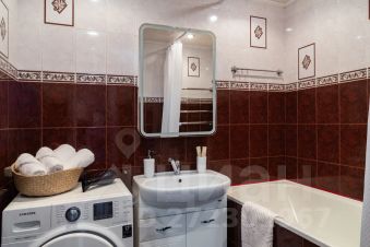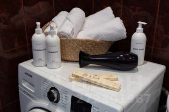 - В ванной комнате находится ванна, стиральная машина, фен, бойлер, косметические средства и белоснежные полотенца. Санузел расположен отдельно.