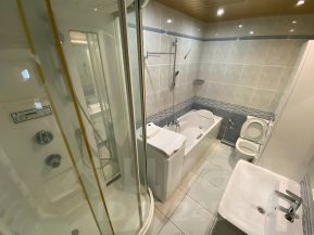 В квартире чисто, просторно, есть все необходимое - стиральная машина, 2 санузла (отдельный туалет с раковиной и отдельная ванная комната с туалетом, ванной и душевой), 2 больших холодильника, кухонный гарнитур, электрическая плита с духовкой.