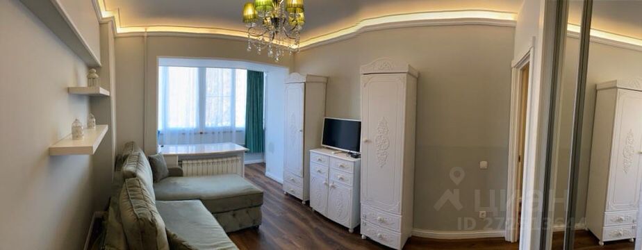 Полностью меблирована: гостиная: диван-раскладной-уголок, кондиционер, этажерка, журнальный столик, комод, шкаф, компьютерный стол.