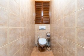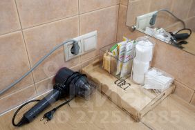 В ванной комнате стиральная машина, фен, махровые полотенца по 2 штуки (большое и малое) для каждого человека, махровые халаты (индивидуально), шампунь, мыло, гель для душа, ватные диски и палочки, туалетные принадлежности, швейный набор.