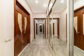 Комнаты: 2. Две изолированные спальни, одна из них с гостиной зоной, кухня со столовой, раздельный санузел с ванной, коридор с большим встроенным зеркальным шкафом.