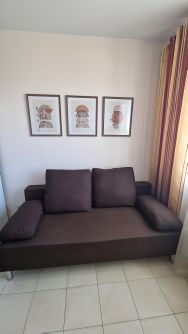 Хороший вид из окон. Кухня-гостинная единая зона (13 кв.м.), плюс спальная комната, застекленная лоджия, сан-узел совмещен.