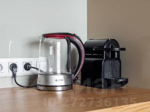 Кухня: духовой шкаф (встр.), микроволновая печь (встр.), электрическая плита (встр.), вытяжка (встр.), посудомоечная машина (встр.), холодильник, кофе-машина (Nespresso), чайник, встроенная система фильтрации воды (обратный осмос);
