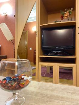Квартира общей площадью 60 квадратных метров состоит из двух уютных комнат. В гостиной вас ждёт удобная кровать размером 180*200, диван (не раскладывается), шкаф для хранения, комод, торшер и телевизор. На окнах — двойные шторы, тюль и жалюзи, чтобы вы могли регулировать освещение по своему вкусу.