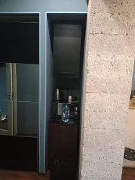 Вся техника в наличии- микроволновка, плита, мультиварка,холодильник,стиральная машина. Как таковой кухни нет, но учитывая мультиварку-она и не нужна.