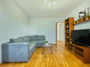 В квартире для удобного проживания имеется современная мебель и техника: одна большая двуспальная кровать и двуспальный раскладывающийся диван, раскладной пуф по запросу, бытовая техника, скоростной WI-FI, Спутниковое ТВ, стиральная машина, два ЖК телевизора (в каждой комнате), гладильная доска, сушка, оборудованная кухня, полный комплект посуды для приготовления и приёма еды, шампунь, антибактериальный гель, мыло, тапочки.