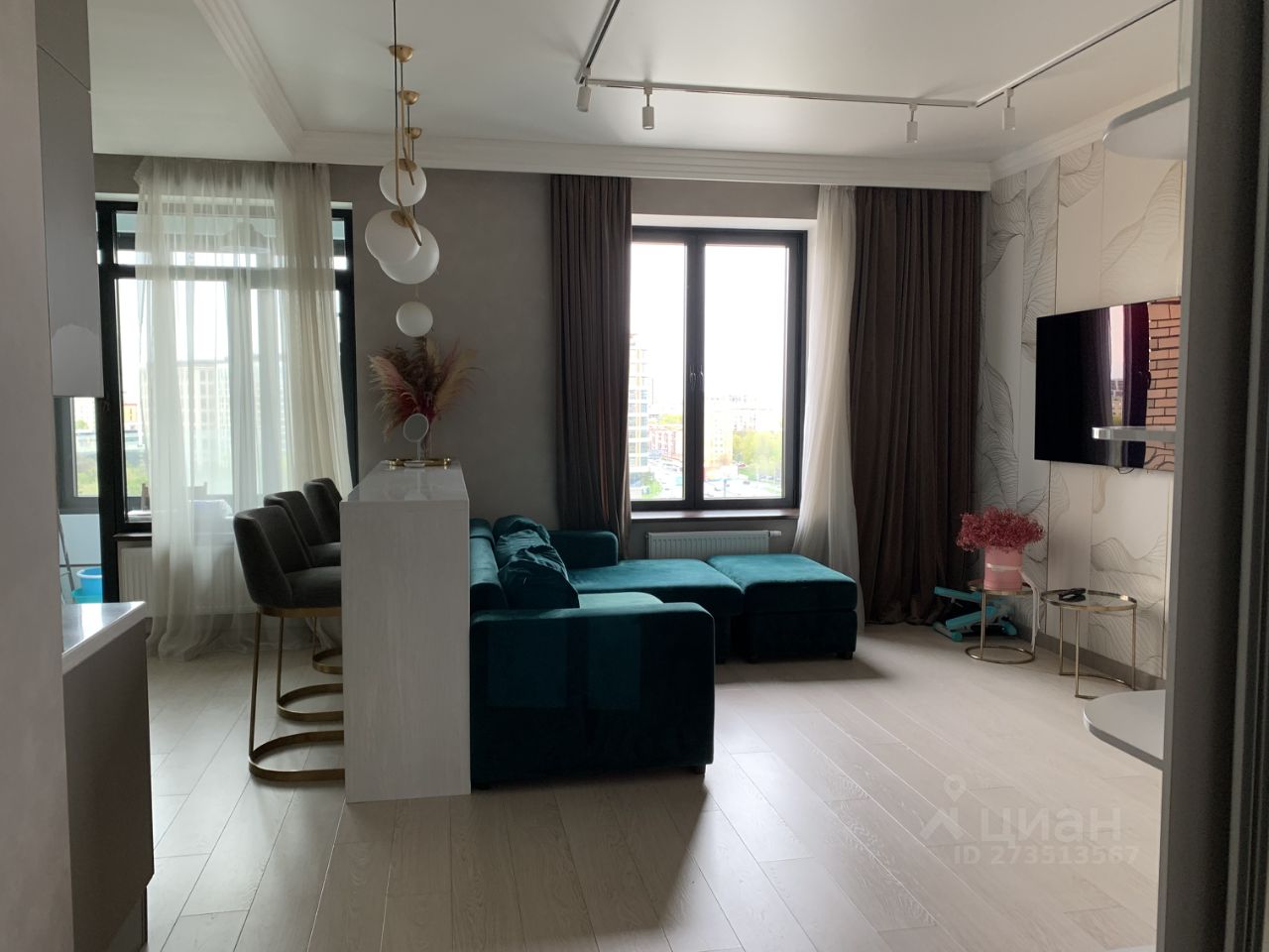 Дизайнерский ремонт . Квартира полностью оборудована мебелью и техникой, В гостиной и в спальне двойной свет.