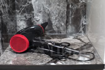 Техника: СВЧ, холодильник, электрический чайник, электроплита, стиральная машинка, фен, утюг (есть гладильная доска, сушилка для одежды), кондиционер.