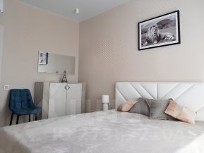 Выполнен евроремонт, полы ламинат и плитка (с подогревом). Квартира оснащена всем необходимым для комфортного проживания: кухонный гарнитур, спальный гарнитур, гардеробная, варочная панель, духовой шкаф, стиральная машина, электрический полотенцесушитель, посудомоечная машина, холодильник, кондиционер, микроволновка, телевизор и Wi-Fi. Окна выходят на улицу.