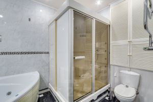 Кухня, гостиная с большой лоджией, 4 спальни, 3 полных санузла с душевыми кабинами и ванной, постирочная, гардеробная.