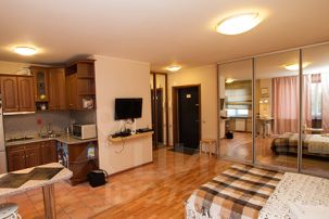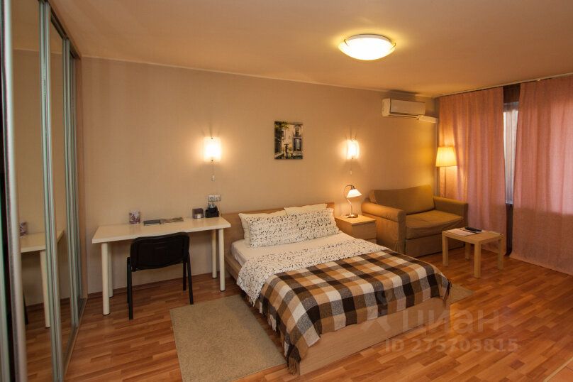 Описание: Замечательная, однокомнатная квартира-студия, в хорошем ремонте и современной мебелью. В квартире прекрасная шумоизоляция. В квартире могут разместиться одновременно от 1 до 4 человек.