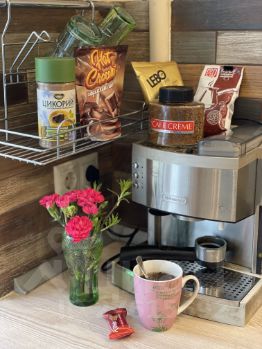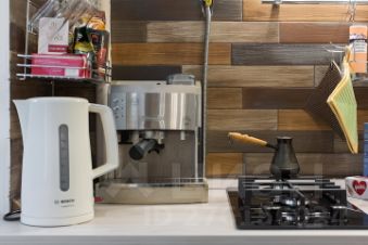 Бытовая техника: Современная кофемашина, Удобная газовая плита, Чистая Микроволновка, Вместительный Холодильник, Мультиварка, Кран с фильтрованной питьевой водой (система Аквафор), Стиральная машина - автомат и сушилка для белья и одежды, Мощный Фен, Утюг и гладильная доска, Посудомойка, Кондиционер, Вентилятор.