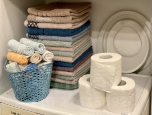 Каждому гостю 2 полотенца: для душа, для рук и лица.