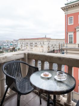 Квартира - флагман сети апартаментов GM Apartments. Одна из немногих на рынке, где есть практически все для ценителей комфорта, больших пространств и видовых панорам. В мастер-спальне предусмотрена отдельная ванная комната с джакузи. На двух открытых балконах оборудовано место для отдыха, где, сидя с бокалом вина, Вы насладитесь видом на яркую Тверскую улицу и величественный Кремль. В апартаментах легко разместится до 12 человек. В одной из спален есть письменный стол для работы. Квартира оснащена всей необходимой бытовой техникой: посудомоечной машиной, стиральной и сушильной машиной, духовым шкафом, холодильником и кофе-машиной.