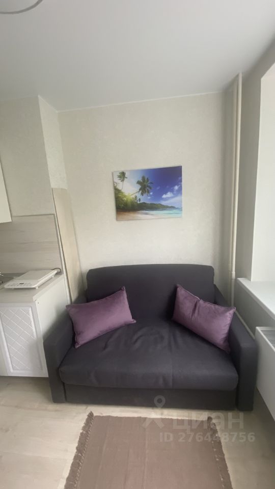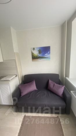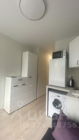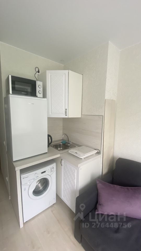 Маленькая, но функциональная студия, полностью меблированная, холодильник, стиральная машинка, эл.чайник, плита, диван, шкафы, письменный стол есть.