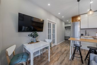 - вся необходимая мебель для проживания: двуспальная кровать, диван ( не является спальным местом), места для хранения вещей и обеденная зона