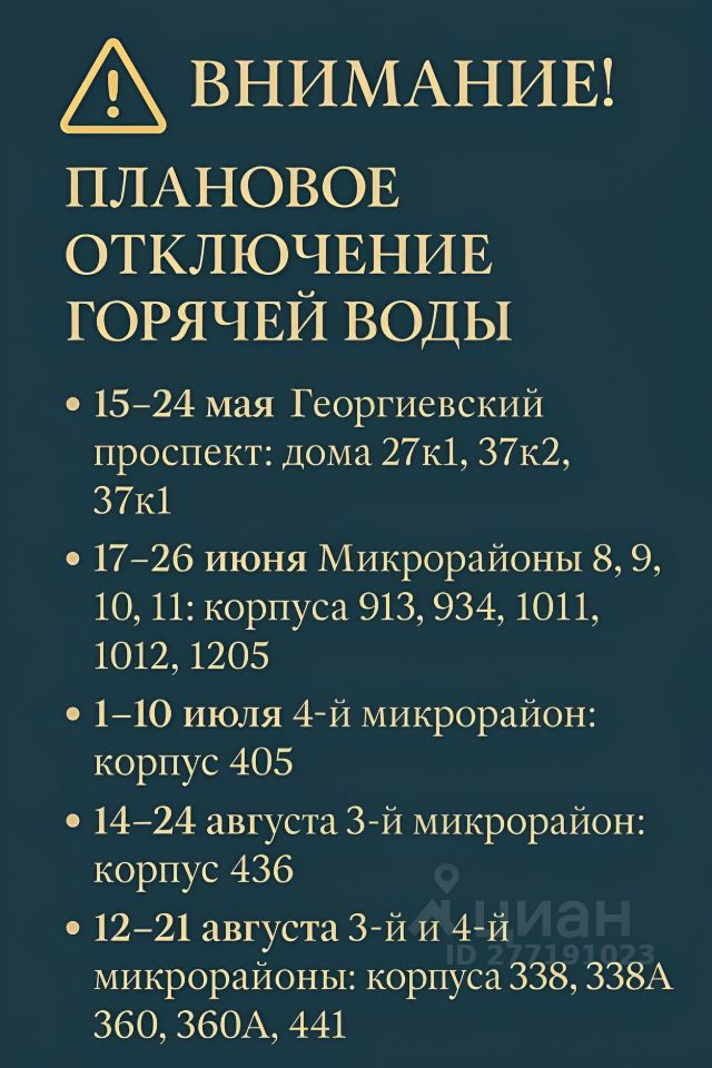 ОТСУТСТВИЕ ГОРЯЧЕЙ ВОДЫ с 13 по 22 АВГУСТА
