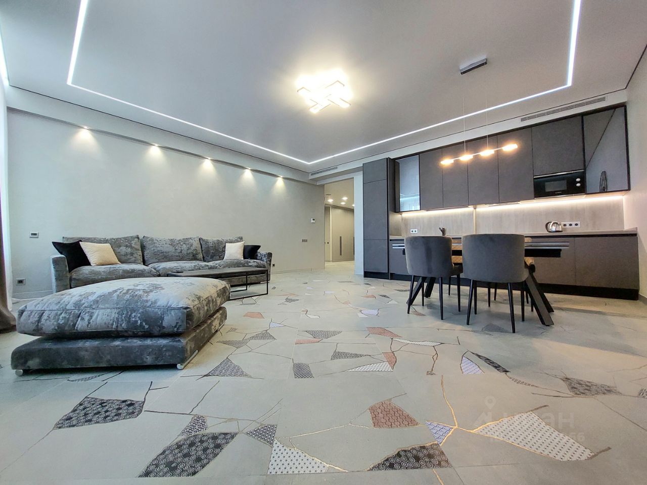 Сделан качественный ремонт по индивидуальному дизайнерскому проекту с применением дорогостоящих материалов.