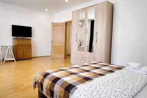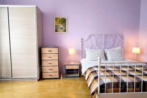 Удобства:Квартира предназначена для проживания 1-6 человек. В квартире: две двуспальные кровати, двуспальный диван.В квартире есть все необходимое для проживания, отдыха и работы: Wi-Fi, кабельное ТВ (100 каналов), DVD, городской телефон, стиральная машина, электрочайник, фен, утюг, гладильная доска, сушилка для белья, набор для чистки обуви (крема, щетки), щетка для чистки одежды, вся необходимая посуда для приготовления и приема пищи, комплекты застеленного постельного белья, полотенца (одно большое и одно маленькое - комплект для одного человека), одно полотенце - коврик для ног, одно кухонное полотенце, одноразовые тапочки, средства личной гигиены (одноразовые зубные щетки, зубная паста, жидкое мыло, ватные диски, ватные палочки, гель для душа, шампунь, одноразовая мочалка, шапочка для душа, стиральный порошок), фильтр для очистки воды, чай пакетированный (черный и зеленый), кофе, сахар, соль, перец, бумажные салфетки, зубочистки, бумага для записи, канцелярский набор, швейный набор, рожок для обуви и другие необходимые мелочи. Все входит в стоимость проживания! По запросу предоставим Вам бесплатно детскую кроватку. С собой брать ничего не нужно, кроме личных вещей.