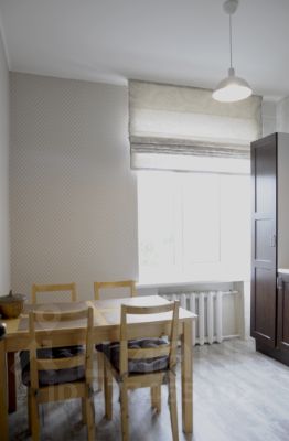 Просторная квартира площадью 82 кв. м расположена на 5 этаже 12-этажного кирпичного дома с лифтом, построенного в стиле сталинский ампир. Из окон открывается замечательный вид на Триумфальную арку и парк Победы на Поклонной горе. Все окна выходят на Кутузовский проспект.