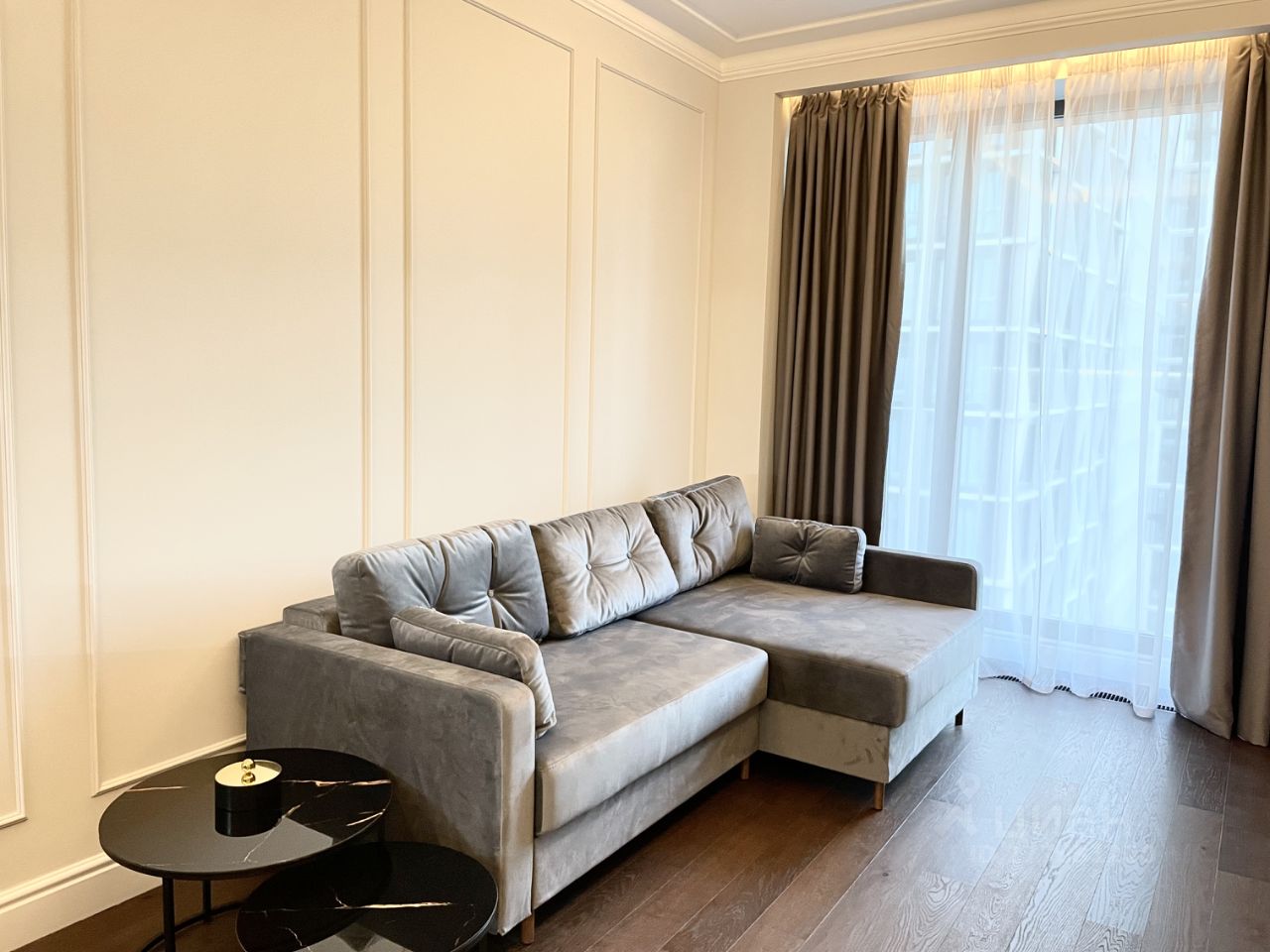 Установлена встроенная система кондиционирования. Сделана функциональная планировка, 2 санузла, спальня, кухня с гостиной, гардеробная, рабочий кабинет.